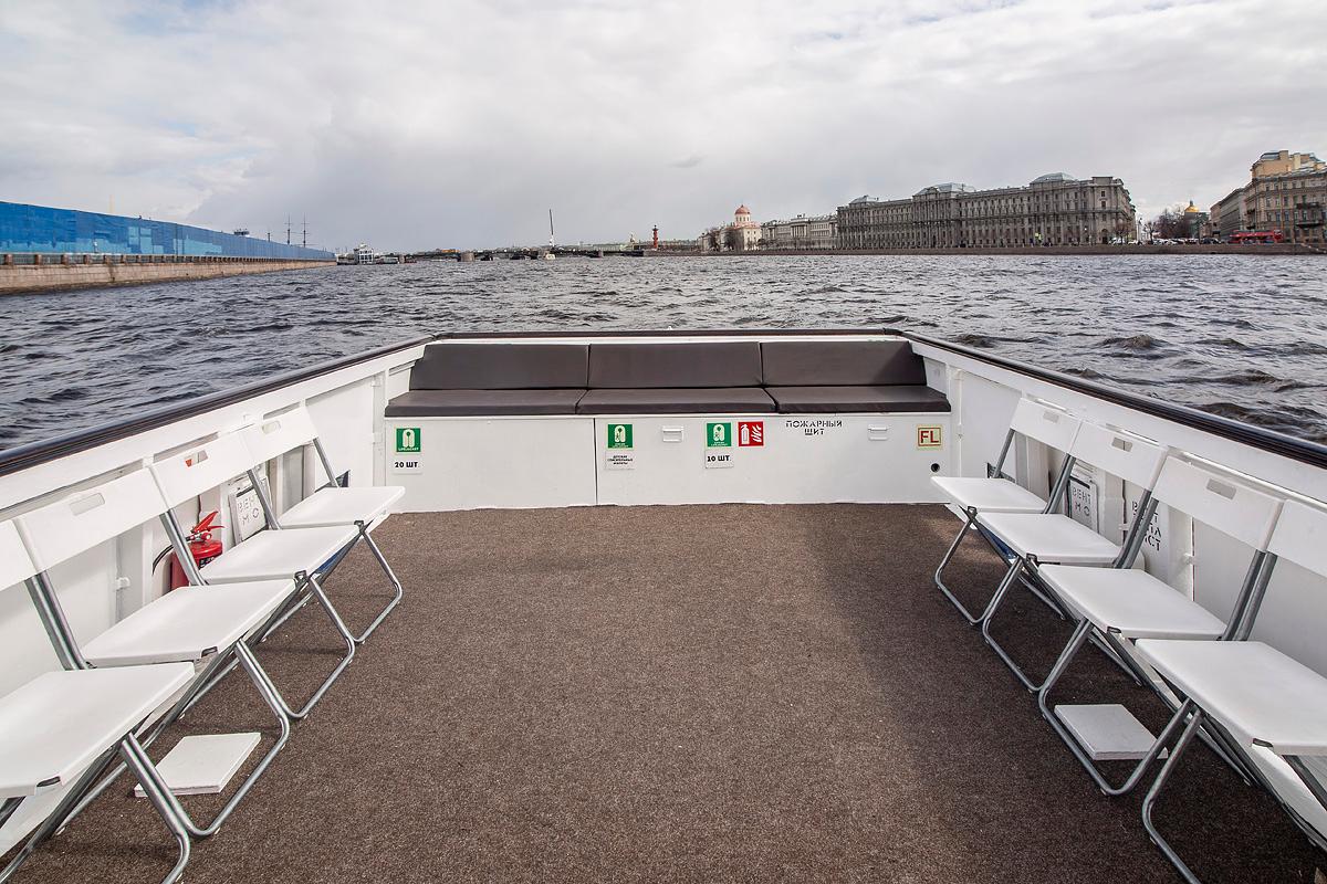 На борту теплохода созданы все условия, чтобы вы могли насладиться прогулкой по акватории Санкт-Петербурга с максимальным комфортом.