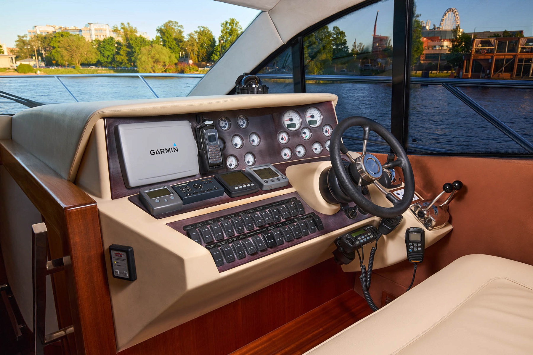Флайбридж с зоной для загара и грилем — отличное место для отдыха на свежем воздухе. На открытой палубе вы можете провести время в кругу друзей или коллег, наслаждаясь видами Санкт-Петербурга.