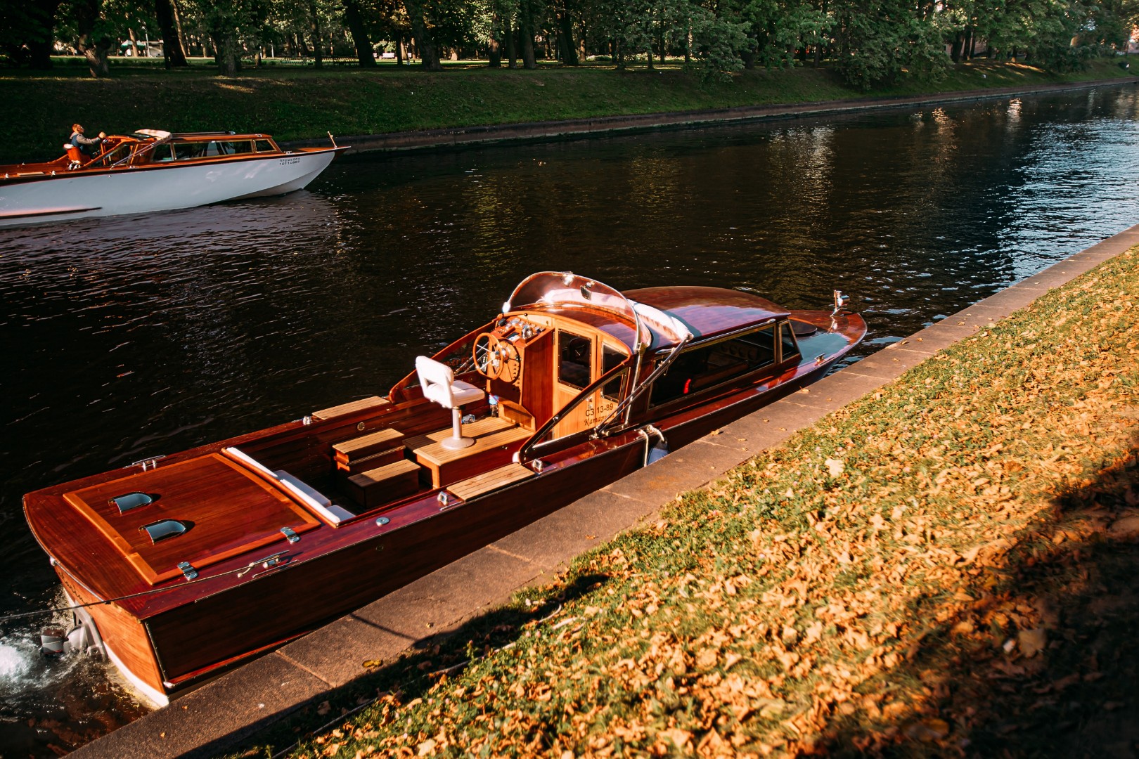 Палуба и салон выполнены из изысканного красного дерева, что создает особую атмосферу роскоши. Мягкие диваны, обогрев салона и тёплые пледы создадут комфорт даже в прохладные дни, а тент защитит от солнца и непогоды. На борту катера предусмотрено всё для вашего удобства: бокалы для праздников, мощная аудиосистема, чтобы насладиться любимой музыкой, и комфортная зона отдыха.