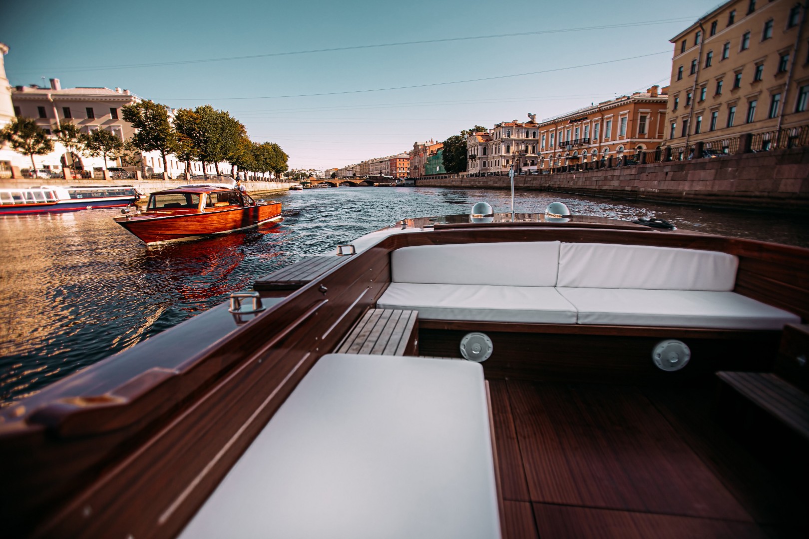 Прокат катера с капитаном — это отличный способ провести незабываемое время в Санкт-Петербурге. Водная прогулка по Неве и каналам станет прекрасным фоном для фотосессии, выпускного или другого важного события.
