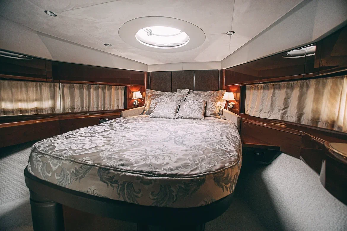 Яхта Princess 62 Nord Star — это наша новинка в сфере премиального отдыха и элегантности. В её интерьере сочетаются роскошь и уют: дорогая отделка из благородного дерева и панорамные окна создают неповторимую атмосферу. Просторный крытый салон с лаунж-зоной для гостей станет вашим личным уголком для отдыха.