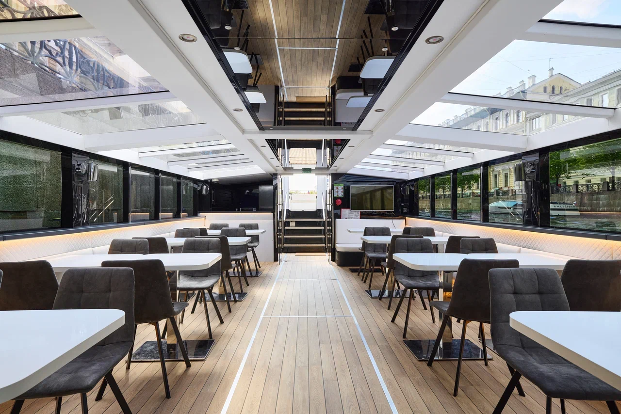 Теплоход премиум-класса «Нота» с одной палубой — это превосходное место для организации запоминающихся праздничных событий на воде. Мы создали атмосферу, которая позволит гостям полностью расслабиться и насладиться увлекательной водной экскурсией по Санкт-Петербургу.